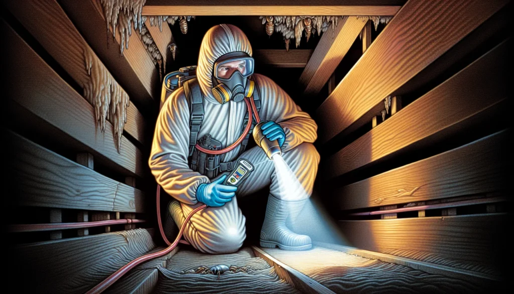 Termite inspectors also search for discarded termite wings, often found near windows and doors, which can indicate the presence of termite colonies. Termite droppings, or frass, that resemble wood pellets are another sign of a termite infestation. To detect these signs, a termite inspector will use specialized tools like moisture meters, infrared cameras, and even methane detectors.